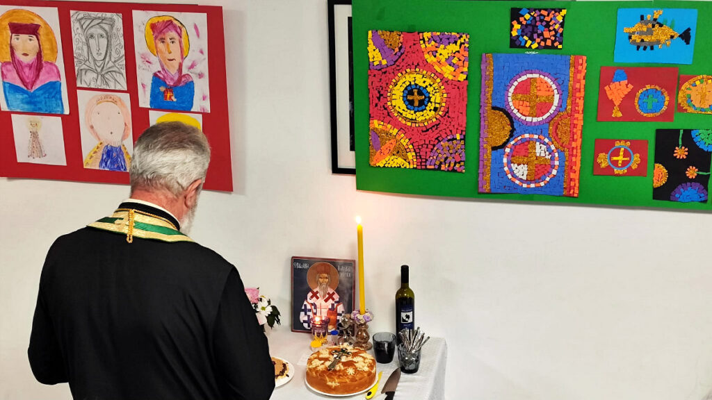 Након резања славског колача, чланови Дечјег хора „Ирмос” Дуња Вербић и Лука Еровић отпевали су три песме: „У наручју Хиландара”, „Расти, расти, мој зелени боре” и „Везак је везла Дјева Марија”.
