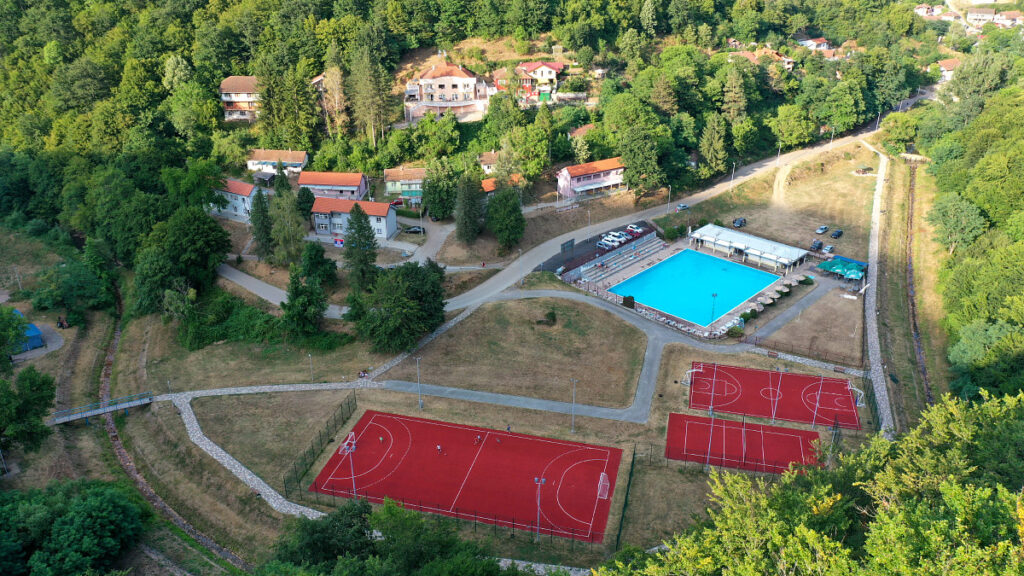 Одмах поред Хиландарског села налазе се: олимпијски базен, терени за кошарку, мали фудбал, рукомет и одбојку, које је Општина Медвеђа обновила. Доступни су и базени са термоминералном водом.