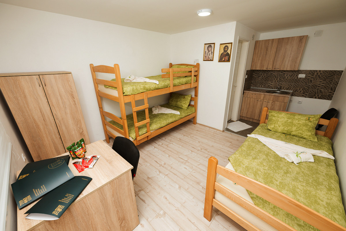 У оквиру комплекса Хиландарског села налазе се четири конака са укупно 54 лежајева. Собе су претежно двокреветне и трокреветне, уз две четворокреветне. Свака соба има своје купатило.